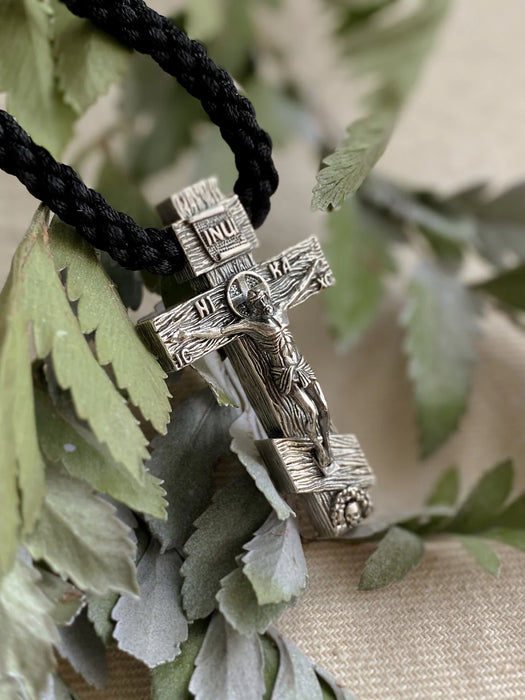 View full detailsThis cross is handmade from 925 sterling silver with an ornament of life-giving tree lines. The Life-Giving Cross, the Cross of the Lord, the Life-...