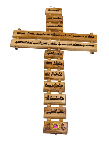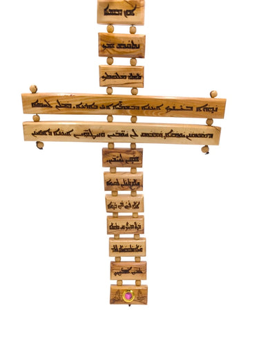 Cross Our Father Syriac Aramaic Wall 16" Olive Wood Made Holy Land Christian