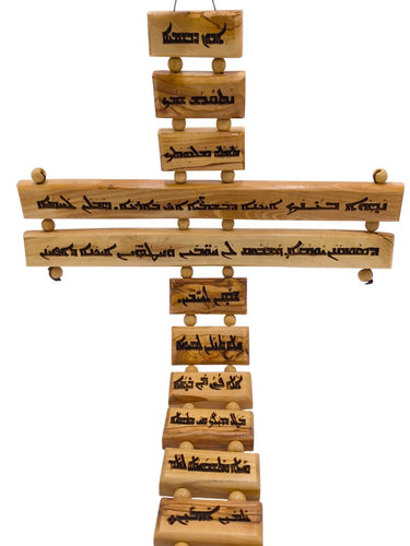 Cross Our Father Syriac Aramaic Wall 16" Olive Wood Made Holy Land Christian This 16-inch wall cr...