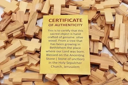 Handmade olive wood crosses, accompanied by a certificate of authenticity. These exquisite crosse...