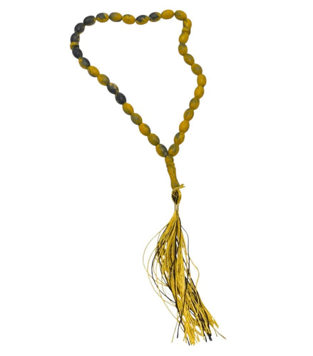 New Handmade Greek Komboloi Yellow & Black Swirl Prayer Beads Tassel Beads